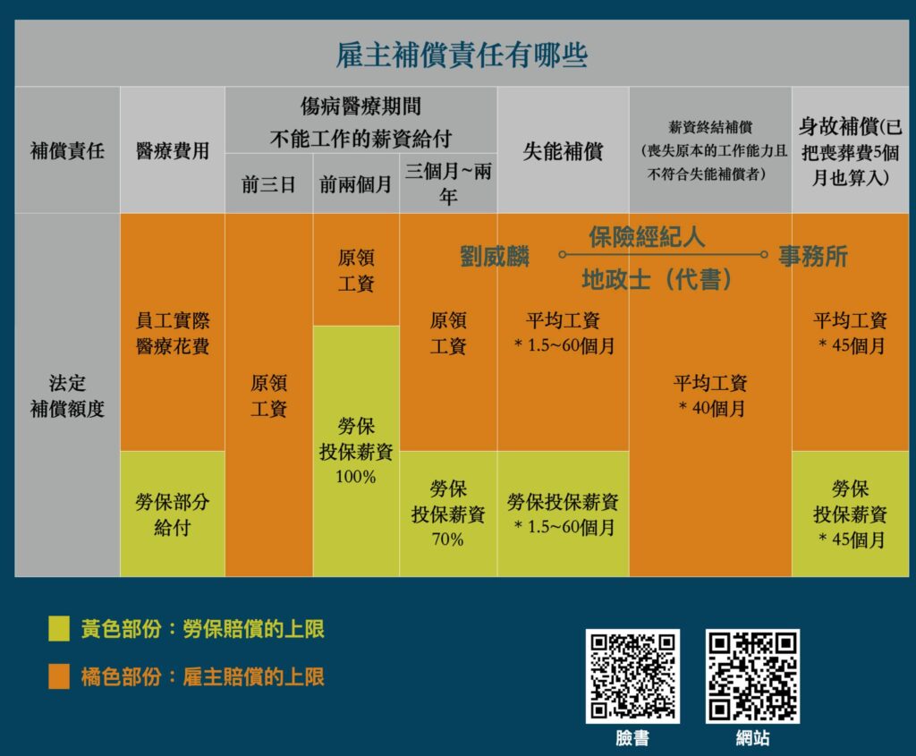 威麟已經幫您把勞基法跟職保法關於補償的相關規定做成圖表囉!